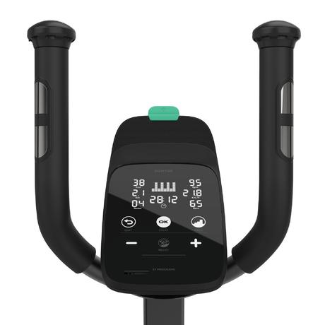 - 5 funciones: calorías quemadas, distancia recorrida, tiempo de entrenamiento, velocidad y frecuencia cardíaca a través de los sensores situados en el manillar. - 7 programas diseñados en colaboración con nuestros coachs, para acompañarte durante los entrenamientos.