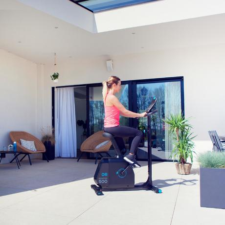 La bicicleta estática 500 se beneficia de sensores cardíacos integrados en el manillar.