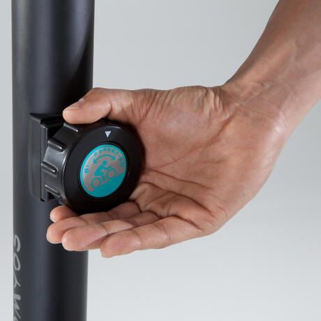 La bicicleta estática EB Essential 2 Domyos se beneficia de sensores cardíacos integrados en el manillar. Es un método fiable para medir la frecuencia cardíaca. Coloca las manos sobre los sensores y la frecuencia cardíaca se visualiza después de unos segundos en la pantalla de la consola. La función Hand-Pulse (medición de la frecuencia cardíaca por las manos) no está indicada para personas portadoras de marcapasos.