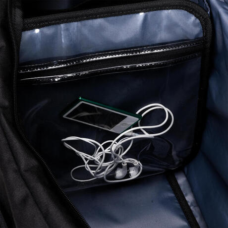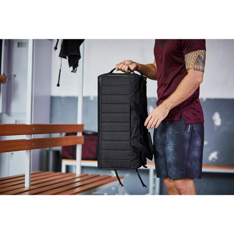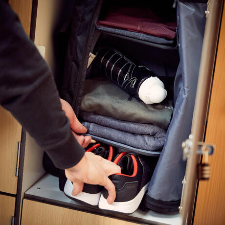 La bolsa de fitness 40 Litros está diseñada y concebida para los practicantes que van al gimnasio antes, durante o después del trabajo. Bolsa para transportar el equipo y los accesorios de fitness. Bolsa provista de múltiples compartimentos, para ordenar bien los enseres y facilitar su uso. Fácil de llevar gracias a los 4 modos distintos de transporte, esta bolsa está concebida con una forma que se adapta a las dimensiones de la taquilla del vestuario.