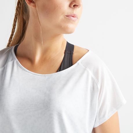 Camiseta manga corta Cardio Fitness Domyos FTS 120 mujer blanco estampado