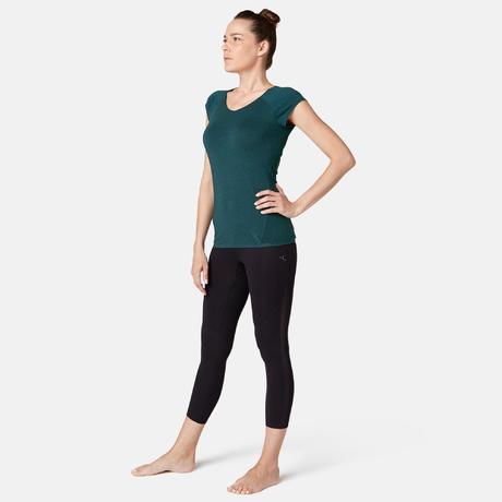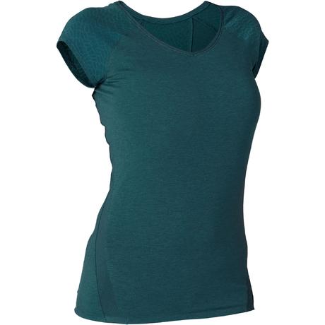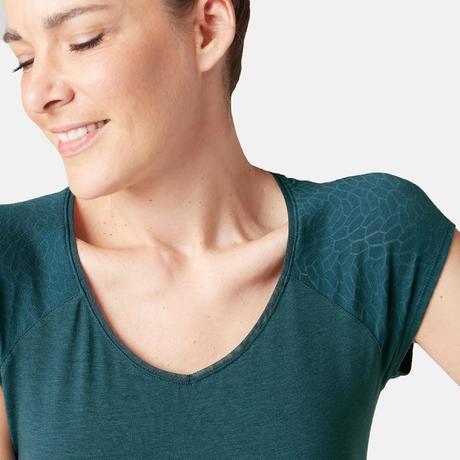 Camiseta Manga Corta Gimnasia Pilates Domyos Devoré 530 Mujer Azul