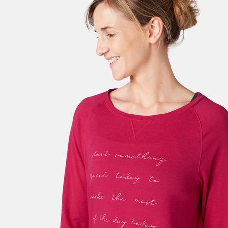 Camiseta Manga Larga Gimnasia Pilates Domyos 500 Mujer Rosa Estampado