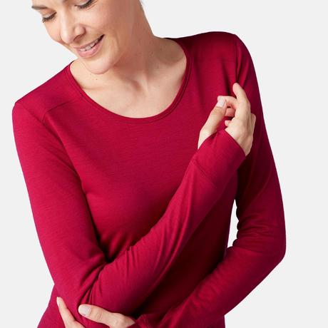 Camiseta Manga Larga Gimnasia Pilates Domyos 510 Mujer Rosa Lana Merina