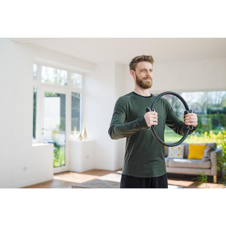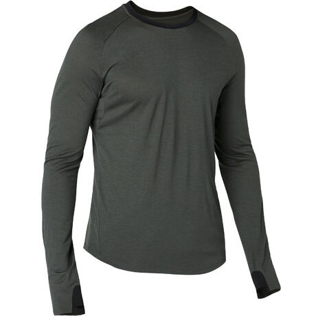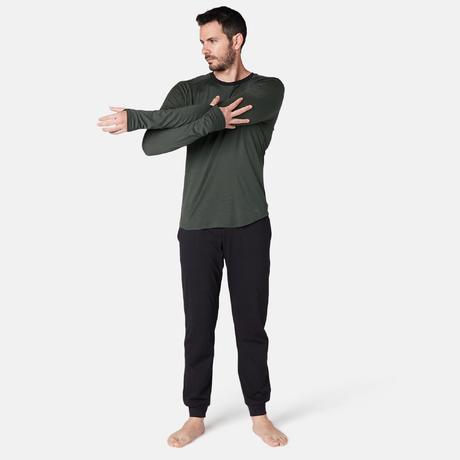 Camiseta Manga Larga Gimnasia Pilates Domyos ML Regular Hombre Caqui