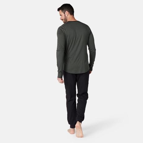 La lana es una materia natural ideal para mantener el cuerpo a la temperatura adecuada. Esta camiseta tiene apertura para pasar el pulgar y es más larga en la espalda.