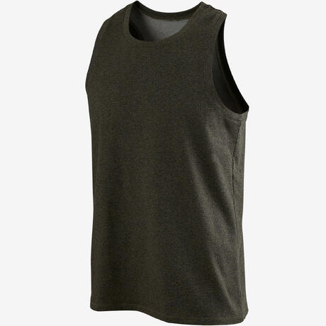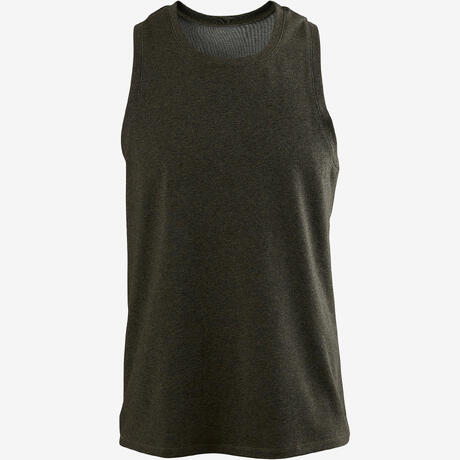 Camiseta Sin Mangas Tirantes Gimnasia Pilates Domyos 500 Hombre Caqui