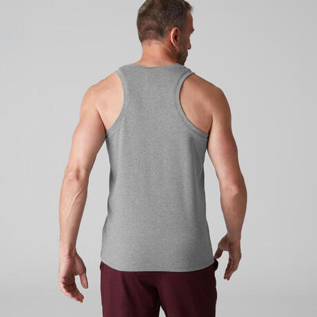 Camiseta Sin Mangas Tirantes Gimnasia Pilates Domyos 500 Hombre Gris