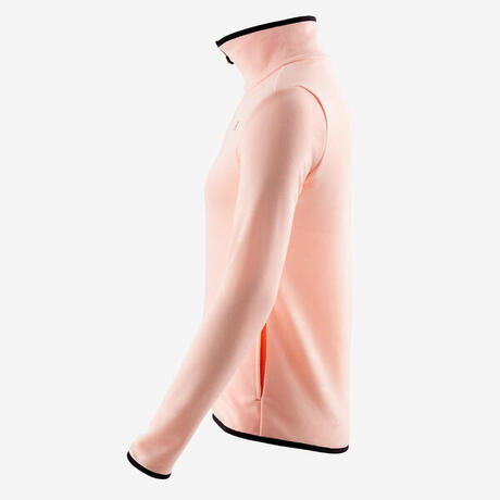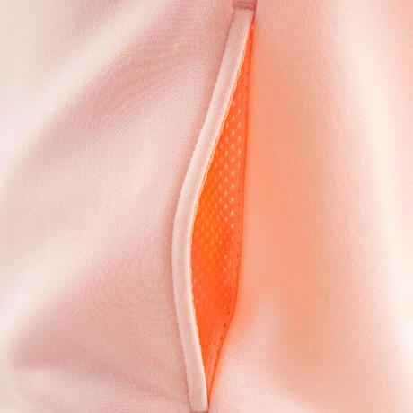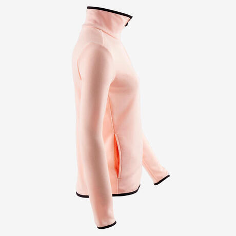 Chaqueta con bolsillos, 100% poliéster, evacua la sudoración. Acabados con elástico visible de color negro. Tejido muy suave en el interior. Cara interna estructurada, un poco mate en el exterior.