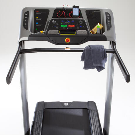La práctica de la marcha o del running es ideal para ponerse en forma, cuidar la condición física, afinar la silueta o desarrollar las capacidades cardiovasculares. La cinta para correr INTENSE RUN by Domyos permite practicar en casa con cualquier tiempo e integrar fácilmente los entrenamientos en la vida cotidiana. Permite adaptar los entrenamientos a los objetivos y tener en cuenta el estado de forma para una mayor comodidad y eficacia.