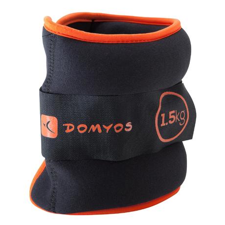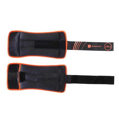 Lastres y Pesas para Tobillos y Muñecas Gimnasia Pilates Domyos 2X1,5KGNegro/Nar
