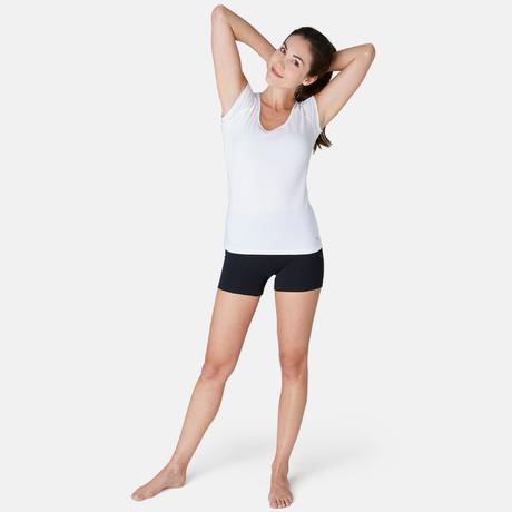 Malla Corta Short Gimnasia Pilates Domyos Fit+ 500 Slim Mujer Negro