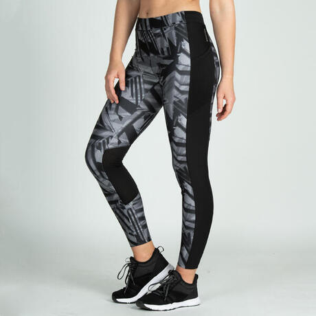 Mallas Leggings Deportivos Cardio Fitness Domyos 120 mujer gris negro