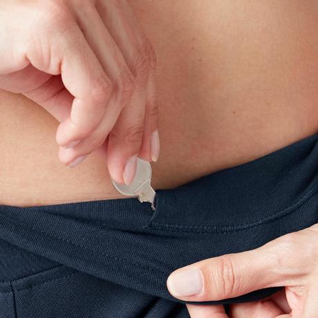 La etiqueta ya no te molestará más durante la sesión deportiva. A partir de ahora la etiqueta ya no está cosida directamente en el producto, sino sobre una pieza de tela. Esto permite cortarla para que no te moleste, sin correr el riesgo de estropear la prenda.