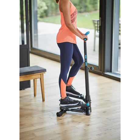 En casa, estiliza la silueta combinando refuerzo muscular y cardio. El uso del stepper MS120 activa los abdominales y la musculatura de la parte inferior del cuerpo (glúteos, muslos, pantorrillas,...) para realizar un trabajo completo y a fondo. Nuestros diseñadores han decidido desarrollar un stepper fácil de utilizar, para usarlo de forma rápida e intuitiva. Disfruta además del manillar ajustable a tu altura para adoptar una postura erguida.