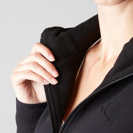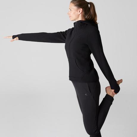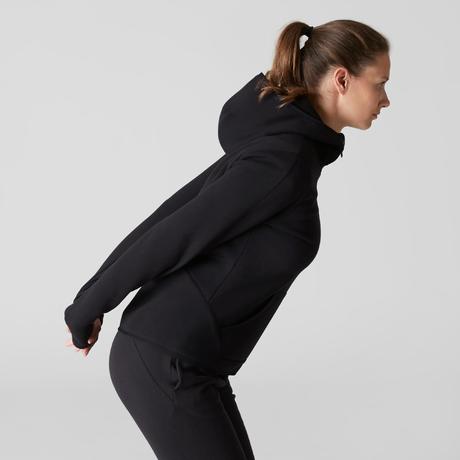 Sudadera Chándal Cremallera Capucha Gimnasia Pilates Domyos 900 Mujer Negro